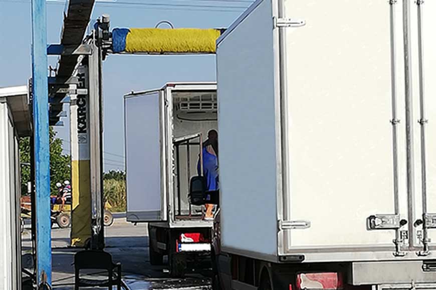 Автоцентърът разполага с портална автомивка за автоматично външно почистване на товарни превозни средства. В порталната автомивка могат да се измиват товарни превозни средства като камиони, камиони с ремаркета, седлови влекачи, автобуси или малки бусове в най-различни изпълнения, а за притежателите на леки автомобили предлагаме безконтактно външно почистване с висококачествени препарати !